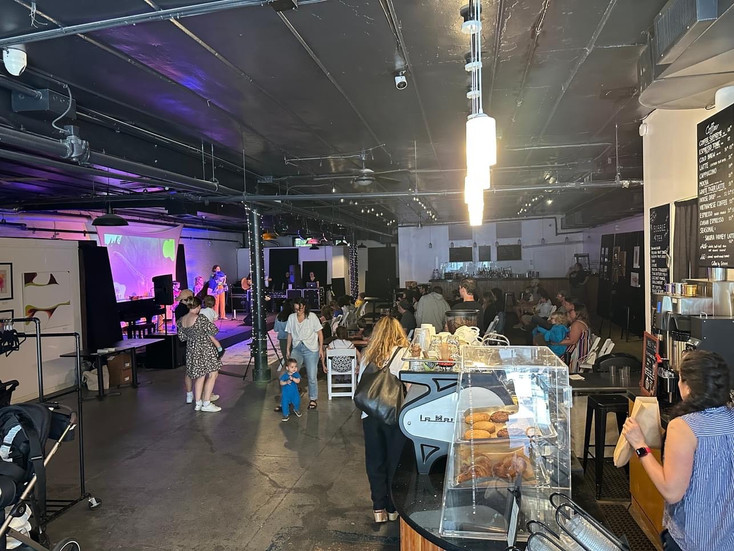 One of the first things you'll notice is the welcoming café and bar area, where a friendly barista is ready to serve up coffee, drinks, and an assortment of delicious treats. The café greets you right as you enter, setting a relaxed and creative tone for your visit. It’s a perfect spot to grab a drink and settle in before experiencing the rich array of performances and events the venue has to offer.
